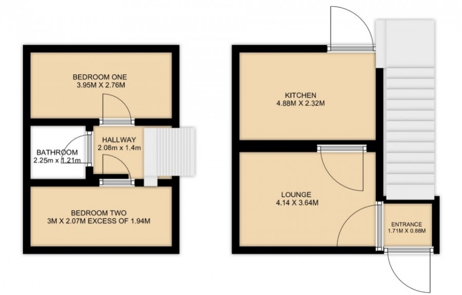 - Two bedrooms